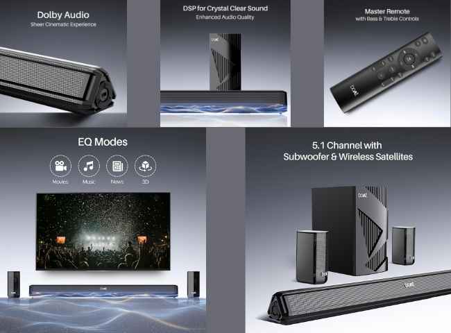 ఇది వైర్లెస్ శాటిలైట్ స్పీకర్స్ తో వచ్చే 5.1 ఛానల్ సౌండ్ బార్
