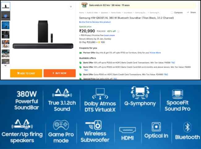 Samsung Dolby Atmos సౌండ్ బార్ : ఆఫర్స్