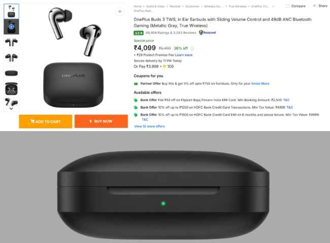 వన్ ప్లస్ బడ్స్ 3 ఇయర్ బడ్స్ రూ. 6,499 రూపాయల ధరతో లాంచ్ కాగా రిపబ్లిక్ డే సేల్ ముగిసిన తర్వాత ఈరోజు ఫ్లిప్ కార్ట్ ఈ ఇయర్ బడ్స్ పై భారీ డిస్కౌంట్ అందించి కేవలం రూ. 4,099 రూపాయల ఆఫర్ ధరలో లిస్ట్ అవుట్ చేసింది. ఈ బడ్స్ ఈ ధరలో గొప్ప ఫీచర్స్ కలిగిన బడ్స్ గా నిలుస్తాయి.