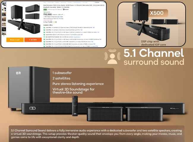 అంతేకాదు, ఈ సౌండ్ బార్ పై రూ. 1,099 రూపాయల అదనపు బ్యాంక్ డిస్కౌంట్ ఆఫర్ కూడా జత చేసింది. BOBCARD మరియు ICICI క్రెడిట్ కార్డ్స్ తో ఈ సౌండ్ బార్ తీసుకునే వారికి ఈ అదనపు డిస్కౌంట్ లభిస్తుంది. ఈ ఆఫర్ తో ఈ సౌండ్ బార్ కేవలం రూ. 9,900 ఆఫర్ ధరకే లభిస్తుంది.