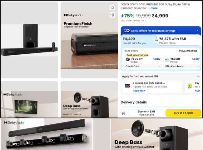 అదనంగా, ఈ బడ్జెట్ సౌండ్ బార్ పై మంచి బ్యాంక్ డిస్కౌంట్ ఆఫర్ కూడా అందించింది. అదేమిటంటే, ఈ సౌండ్ బార్ ను ఈరోజు ఫ్లిప్కార్ట్ నుంచి Kotak బ్యాంక్ క్రెడిట్ కార్డ్ తో కొనే వారికి రూ. 500 రూపాయల అదనపు డిస్కౌంట్ అందిస్తుంది. ఈ ఆఫర్ తో ఈ గోవో సౌండ్ బార్ కేవలం రూ. 4,499 రూపాయల అతి తక్కువ ధరలో లభిస్తుంది.