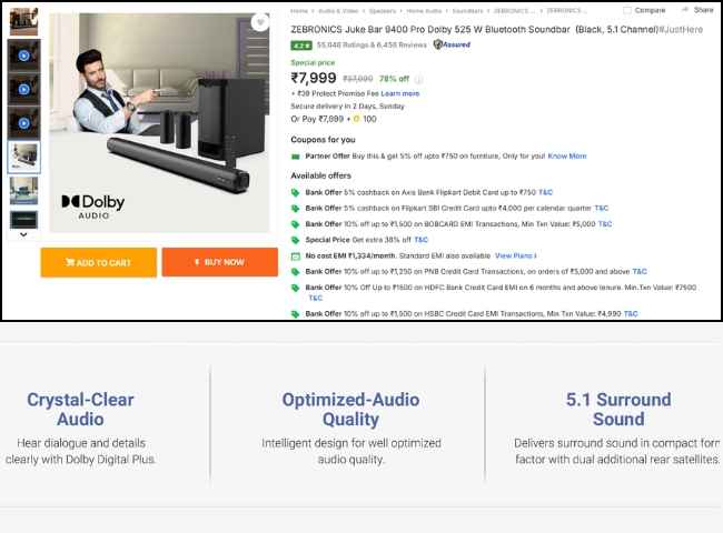 ZEBRONICS 5.1 Dolby సౌండ్ బార్ ఈరోజు ఫ్లిప్ కార్ట్ సేల్ నుంచి 7 వేలకే లభిస్తుంది.!