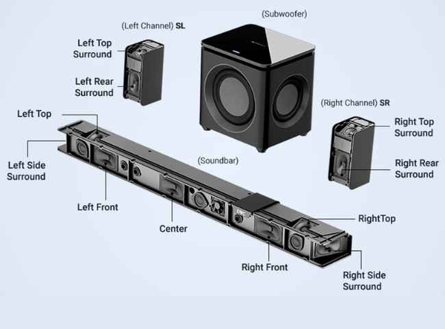 సింపుల్ గా చెప్పాలంటే, 7 స్పీకర్లు మరియు మూడు ట్వీటర్లు కలిగి 520W సౌండ్ అందించే బార్, రెండేసి స్పీకర్లు కలిగి 280W సౌండ్ అందించే శాటిలైట్ స్పీకర్లు మరియు 300W పవర్ ఫుల్ వైర్లెస్ సబ్ ఉఫర్ కలిగి ఉంటుంది. ఈ సౌండ్ బార్ టోటల్ 1100W RMS జబర్దస్త్ సౌండ్ అందిస్తుంది. అంతేకాదు, ఇది పూర్తిగా వైర్లెస్ సెటప్ తో వస్తుంది.