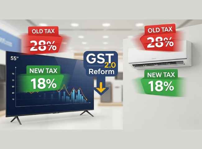 స్మార్ట్ టీవీ మరియు ఏసీ ధరలు భారీగా తగ్గే అవకాశం ఉంటుందని నిపుణులు చెబుతున్నారు. ఎందుకంటే, ప్రస్తుతం నడుస్తున్న 28% జీఎస్టీ స్లాబ్ తో స్మార్ట్ టీవీ మరియు ఏసీ కొనడానికి ఎక్కువ డబ్బు ఖర్చు చేయాల్సి వచ్చేది. అయితే, ఇప్పుడు ఈ టాక్స్ స్లాబ్ ను 18% కి తగ్గించింది కాబట్టి రేటులో భారీగా మార్పులు జరిగే అవకాశం ఉంటుంది. ఉదాహరణకు 50 వేల రూపాయల విలువ కలిగిన ఒక స్మార్ట్ టీవీ లేదా ఏసీ కొనడానికి ప్రస్తుతం రూ. 14,000 జీఎస్టీ వసూలు చేస్తుండగా, కొత్త స్లాబ్ తో ఇది రూ. 9,000 రూపాయలకు తగ్గుతుంది. అంటే, నేరుగా రూ. 5,000 రూపాయల టాక్స్ తగ్గుతుంది. దీని కారణంగా, స్మార్ట్ టీవీ మరియు ఏసీ ఇప్పుడు మరింత చవక రేట్లకే లభించే అవకాశం ఉంటుంది.