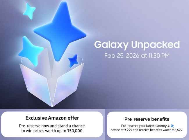 శాంసంగ్ గెలాక్సీ అన్ ప్యాక్డ్ 2026 ఈవెంట్ 25 ఫిబ్రవరి 2026 తేదీ రాత్రి 11 గంటల 30 నిమిషాలకు జరుగుతుంది. ఈ కార్యక్రమం కోసం ముందుగా ప్రీ రిజర్వ్ బెనిఫిట్స్ ప్రోగ్రాం ను కూడా శాంసంగ్ అందించింది. ఇందులో భాగంగా అనేక ప్రొడక్ట్స్ కోసం ముందస్తు రిజర్వేషన్ పేజి ని కూడా అమెజాన్ ద్వారా అందించింది. ఈ కార్యక్రమం అమెరికా లోని శాన్ ఫ్రాన్సిస్కో లో జరుగుతుంది. అందుకే, ఇండియాలో అర్ధరాత్రి లైవ్ చేయబడుతుంది.