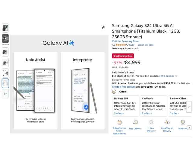 అమెజాన్ సేల్ నుంచి Samsung Galaxy S24 Ultra పై రూ. 45,000 భారీ డిస్కౌంట్ అందుకోండి.!