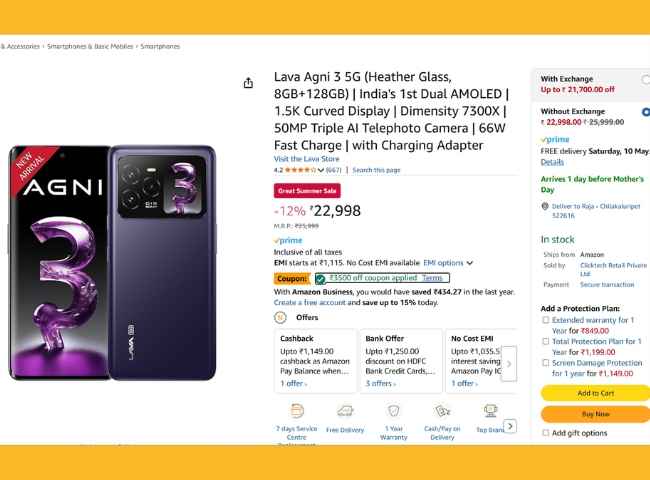 SurveyAmazon Sale Lava Agni 3 5G : ఆఫర్