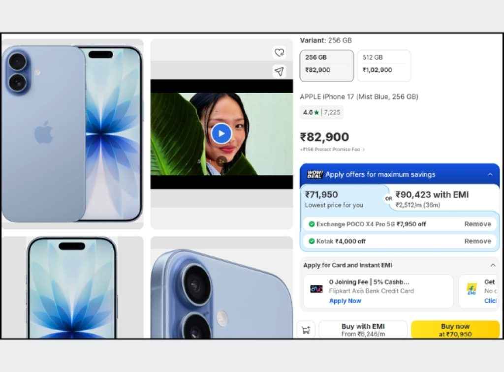 ఐఫోన్ 17 ఫోన్ ఇండియాలో రూ. 82,900 స్టార్టింగ్ ప్రైస్ తో లాంచ్ అయ్యింది. ఈ ఫోన్ ఈరోజు ఐదు ప్రైస్ ట్యాగ్ తో ఫ్లిప్ కార్ట్ నుంచి లిస్ట్ అయ్యింది. అయితే, ఈ ఫోన్ పై ఫ్లిప్ కార్ట్ ఈరోజు రెండు అదనపు డిస్కౌంట్ ఆఫర్లు ప్రకటించింది. ఈ రెండు ఆఫర్స్ తో ఈ స్మార్ట్ ఫోన్ కేవలం రూ. 75,900 రూపాయల ఆఫర్ ధరలో అందుకోవచ్చు .
