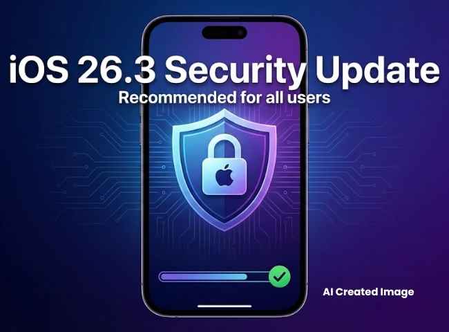iOS 26.3 Update: యాపిల్ ఐఫోన్స్ కోసం కొత్త సెక్యూరిటీ అప్డేట్ నిన్న విడుదల చేసింది. ఈ కొత్త అప్డేట్ లో ఆసక్తికరమైన ఫీచర్స్ మరియు మరింత గొప్ప సెక్యూరిటీ యూజర్లకు అందించింది. ఇది రెగ్యులర్ మెయింటెనెన్స్ అప్డేట్ అవుతుంది మరియు ఇందులో పెద్ద మేజర్ మార్పులు లేవు. కానీ ఒక ఆసక్తికరమైన ఫీచర్ తో మాత్రం యూజర్లకు మంచి అనుకూలత అందిస్తుంది. ఇది కాకుండా ఈ ఫోన్ ను మరింత కట్టుదిట్టంగా ఉంచే సెక్యూరిటీ ని కూడా జత చేసింది.