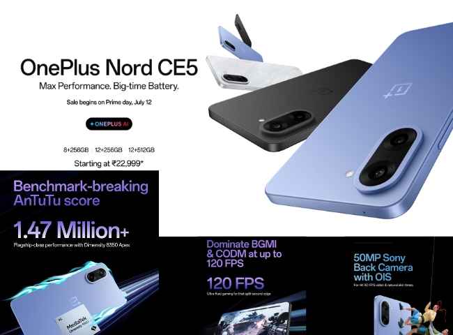 OnePlus Nord CE5 : వన్ ప్లస్ ఈరోజు లాంచ్ చేసిన రెండు ఫోన్లలో వన్ ప్లస్ నార్డ్ CE5 స్మార్ట్ ఫోన్ బడ్జెట్ ధరలో భారీ ఫీచర్స్ తో విడుదలైన ఫోన్ గా నిలుస్తుంది. ఈ ఫోన్ కేవలం 20 వేల రూపాయల బడ్జెట్ ధరలో 1.4 మిలియన్ AnTuTu స్కోర్ కలిగిన మీడియాటెక్ చిప్ సెట్ మరియు HDR 10+ సపోర్ట్ కలిగిన గొప్ప డిస్ప్లే వంటి మరిన్ని ఫీచర్స్ తో లాంచ్ అయ్యింది.