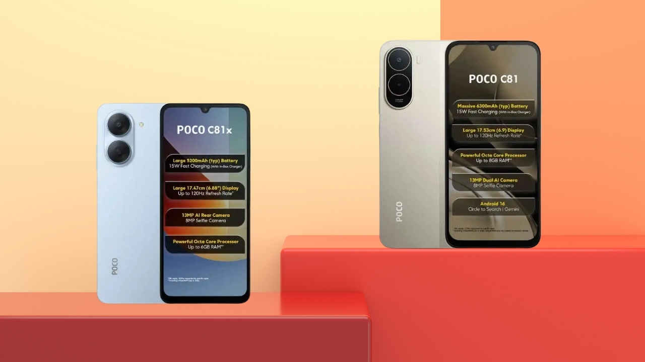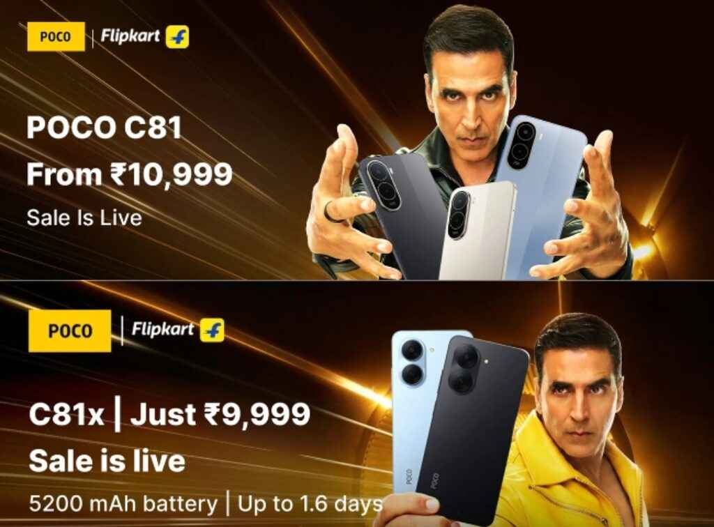 పోకో ఇండియాలో విడుదల చేసిన లేటెస్ట్ బడ్జెట్ స్మార్ట్ ఫోన్లు POCO C81 మరియు C81X ఈరోజు నుంచి సేల్ కి అందుబాటులోకి వచ్చాయి. ఈ రెండు స్మార్ట్ ఫోన్లు కూడా భారీ బ్యాటరీ మరియు గొప్ప డిజైన్ తో కేవలం బడ్జెట్ ధరలో లాంచ్ అయ్యాయి. ఈ కొత్త ఫోన్లు సేల్ కోసం ఎదురు చూస్తున్న యూజర్లు ఈరోజు నుంచి ఈ ఫోన్ ను అందుకోవచ్చు. ఈ సేల్ ప్రైస్, ఆఫర్స్ మరియు కంప్లీట్ ఫీచర్స్ ఇక్కడ చూడవచ్చు.