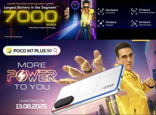 ఇక ఈ ఫోన్ కీలక ఫీచర్లు విషయానికి వస్తే, పోకో ఎం7 ప్లస్ 5జి స్మార్ట్ ఫోన్ బ్యాటరీ మరియు ఛార్జ్ వివరాలు పోకో అందించింది. ఈ ఫోన్ ను బడ్జెట్ సెగ్మెంట్ లో పవర్ ఫుల్ 7000 mAh సిలికాన్ బ్యాటరీ తో లాంచ్ చేస్తున్నట్లు ప్రకటించింది. అంతేకాదు, ఈ ఫోన్ లో వేగవంతమైన ఫాస్ట్ ఛార్జ్ మరియు రివర్స్ ఛార్జ్ సపోర్ట్ ఉన్నట్లు పోకో కన్ఫర్మ్ చేసింది.