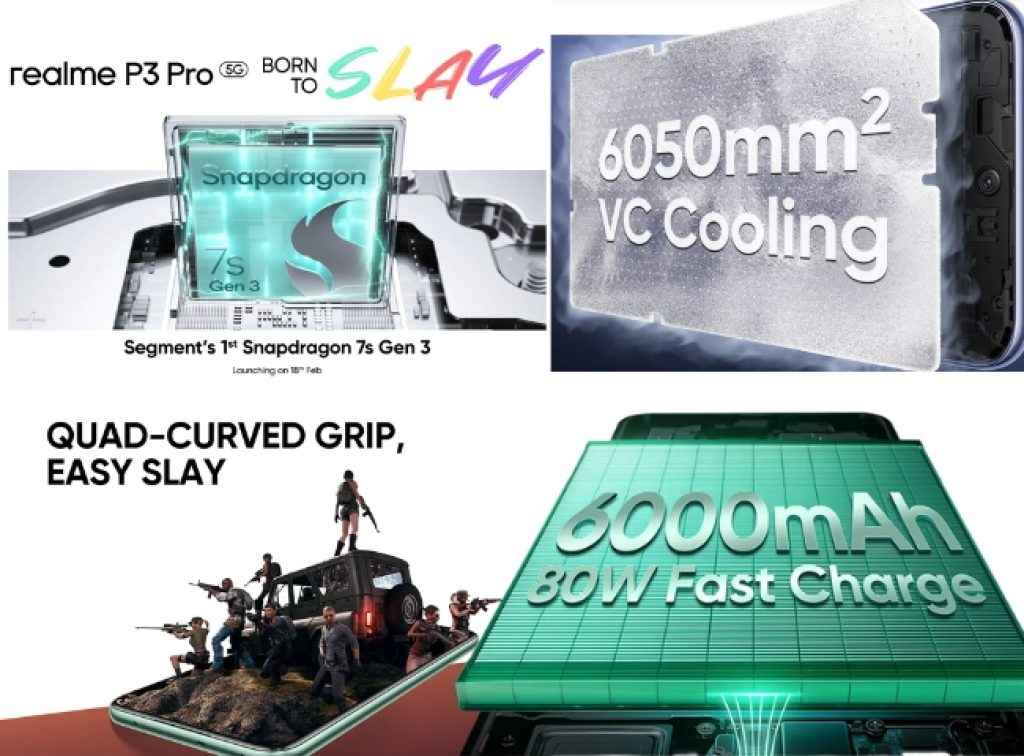 రియల్ మీ పి 3 సిరీస్ ఫోన్ లలో 6000 mAh హెవీ బ్యాటరీ సపోర్ట్ ఉంటుంది మరియు దీనికి జతగా ఈ ఫోన్ లను అత్యంత వేగంగా ఛార్జ్ చేసే 80W ఫాస్ట్ ఛార్జ్ సపోర్ట్ కూడా ఉంటుందట. అంతేకాదు, ఈ అప్ కమింగ్ రియల్ మీ స్మార్ట్ ఫోన్ పెద్ద వేపర్ ఛాంబర్ కూలింగ్ సిస్టం ను కలిగి ఉంటుంది.