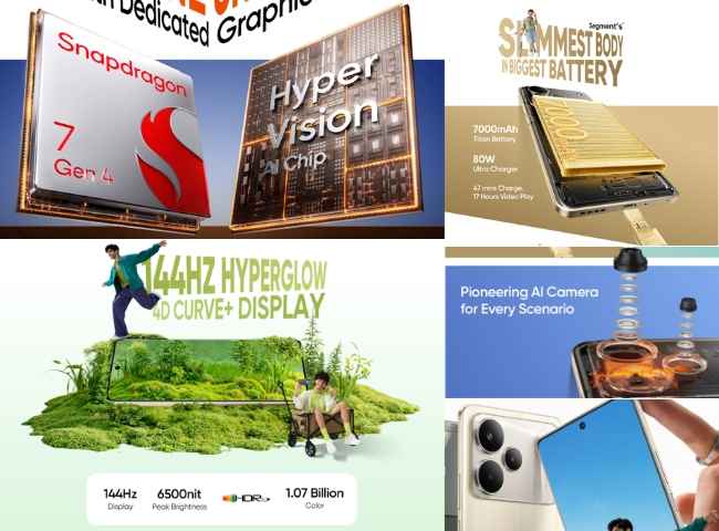 ఈ ఫోన్ డ్యూయల్ చిప్ సిస్టం తో లాంచ్ చేస్తున్నట్లు రియల్ మీ కన్ఫర్మ్ చేసింది. ఈ ఫోన్ క్వాల్కమ్ Snapdragon 7 Gen 4 చిప్ సెట్ మరియు జతగా హైపర్ విజన్ AI చిప్ సెట్ కూడా ఈ ఫోన్ లో ఉంటుంది. ఈ కొత్త AI చిప్ సెట్ ట్రిపుల్ క్లారిటీ మరియు ట్రిపుల్ స్పీడ్ కోసం జత చేయబడిన కొత్త చిప్ అని రియల్ మీ ప్రకటించింది.