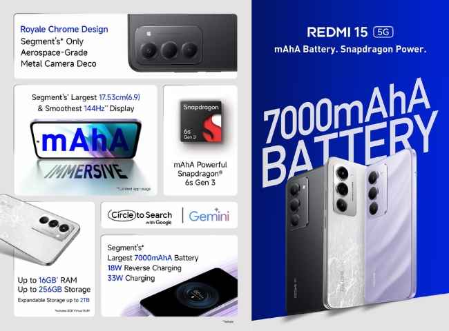 Redmi 15 5G ఫోన్ 7000 mAh భారీ బ్యాటరీ కలిగి ఉంటుంది