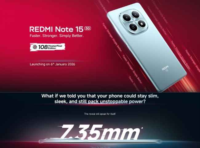 రెడ్ మీ నోట్ 15 స్మార్ట్ ఫోన్ 2026 జనవరి 6వ తేదీ ఇండియాలో లాంచ్ అవుతుంది.