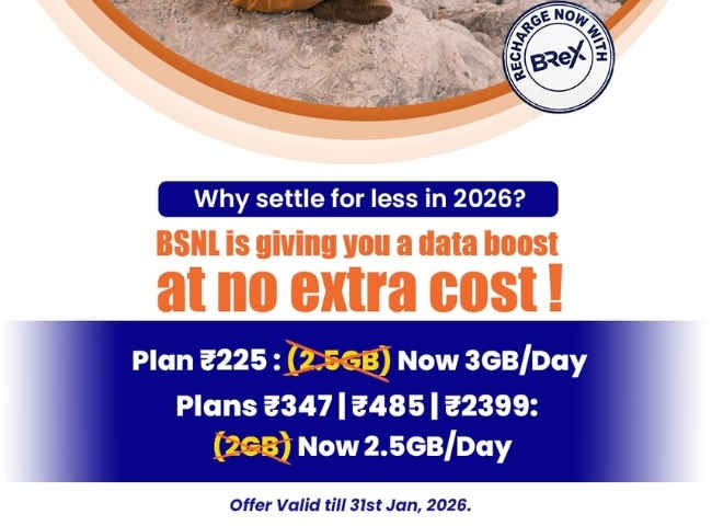 బిఎస్ఎన్ఎల్ 2026 ప్రారంభం లో ఈ కొత్త ఆఫర్ ను అందించింది. ఈ కొత్త ఆఫర్ లో భాగంగా బిఎస్ఎన్ఎల్ యొక్క రూ. 225, రూ. 347, రూ. 485 మరియు రూ. 2,399 రూపాయల ప్రీపెయిడ్ ప్లాన్స్ పై డైలీ 500MB హై స్పీడ్ డేటా అదనంగా ప్రకటించింది. అంటే, ఈ నాలుగు ప్లాన్స్ తో రీఛార్జ్ చేసే యూజర్లకు ప్లాన్ తో వచ్చే డైలీ డేట్ కాకుండా 500MB డేటా అదనంగా (ఉచితం) లభిస్తుంది. ఈ ప్రీపెయిడ్ ప్లాన్ వివరాలు మనకు తెలిసాయి. మరి ఈ ప్రీపెయిడ్ ప్లాన్స్ అందించే బెనిఫిట్స్ ఇప్పుడు చూద్దాం.