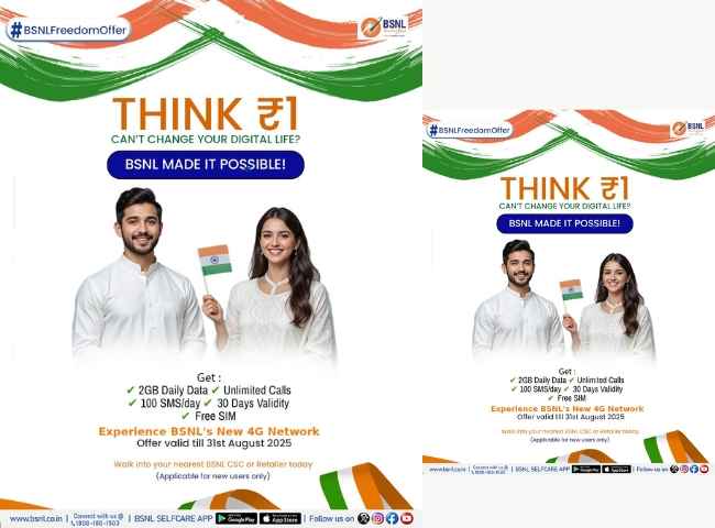 2025 ఆగస్టు 1వ తేదీ నుంచి బిఎస్ఎన్ఎల్ లేటెస్ట్ గా ప్రారంభించిన ఫ్రీడమ్ ప్లాన్ లేదా ఆజాదీ కా ప్లాన్ గురించే మనం ఇప్పుడు మాట్లాడుకుంటుంది. 2025 ఆగస్టు 15 స్వాతంత్య్ర దినోత్సవం సందర్భంగా ఈ కొత్త ప్లాన్ ను బిఎస్ఎన్ఎల్ అందించింది. ఈ ప్లాన్ కేవలం రూ. 1 రూపాయి రీఛార్జ్ తో వస్తుంది. అయితే, ఈ ప్లాన్ అందించే అన్లిమిటెడ్ లాభాలు మాత్రం పూర్తిగా 30 రోజులు అందిస్తుంది.