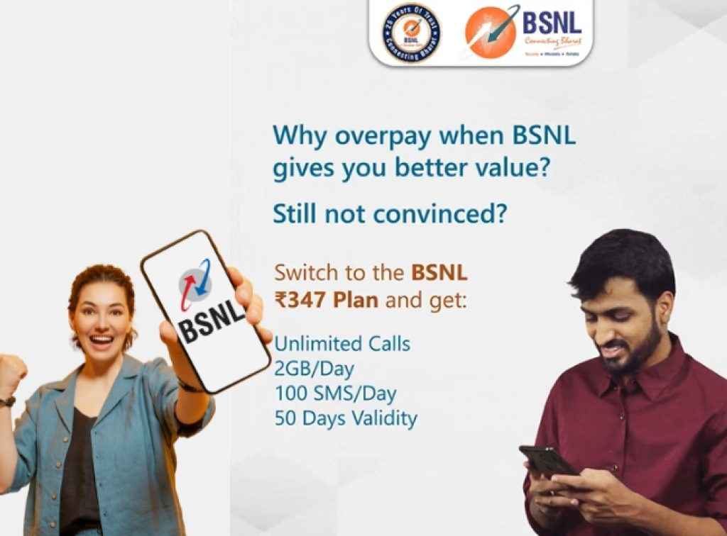 BSNL : పెరిగిన టెలికాం రేట్లు యూజర్లను ఇరకాటంలో పెడుతుంటే బీఎస్ఎన్ఎల్ మాత్రం ఒక నెల రీఛార్జ్ ఖర్చుతోనే 50 రోజులు అన్లిమిటెడ్ ప్రయోజనాలు అందుకోండి అంటోంది. అఫ్ కోర్స్, ఈ మాట నేరుగా చెప్పలేదు అనుకోండి, ఇలాంటి లాభాలు అందించే బెస్ట్ ప్రీపెయిడ్ ప్లాన్ తో ఈ సమాధానం చెప్పింది. బీఎస్ఎన్ఎల్ అందించిన లేటెస్ట్ బడ్జెట్ ప్రీపెయిడ్ ప్లాన్ రూ. 347 ప్రీపెయిడ్ ప్లాన్ ఇప్పుడు మనం చెప్పుకుంటున్న బీఎస్ఎన్ఎల్ సమాధానం అవుతుంది.