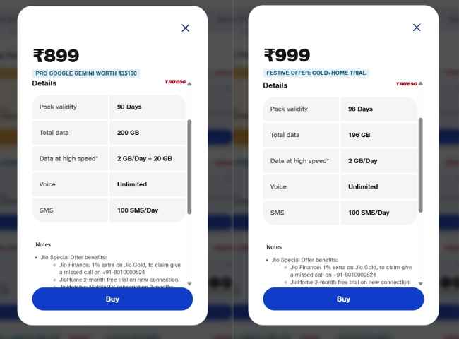 రిలయన్స్ జియో అందించిన మూడు నెలల లాంగ్ వ్యాలిడిటీ ప్రీపెయిడ్ ప్లాన్స్ రూ. 899 రూపాయల ప్రీపెయిడ్ ప్లాన్ మరియు రూ. 999 రూపాయల ప్రీపెయిడ్ ప్లాన్స్ కూడా ఈ కోవకు చెందుతాయి. ఈ ప్లాన్స్ కూడా 90 రోజులు మరియు అంత అంతకంటే ఎక్కువ రోజులు చెల్లుబాటు అవుతాయి. ఈ ప్లాన్స్ ప్రైస్ ను నెలవారీగా లెక్కిస్తే, నెలకు కేవలం రూ. 300 రూపాయలు మాత్రమే అవుతుంది. అంటే, ఈ ప్లాన్ నెలకు కేవలం రూ. 300 రూపాయల ఖర్చుతోనే అన్లిమిటెడ్ లాభాలు అందిస్తాయి. ఈ రెండు ప్రీపెయిడ్ ప్లాన్స్ అందించే బెనిఫిట్స్ ఇప్పుడు వివరంగా చూద్దాం.