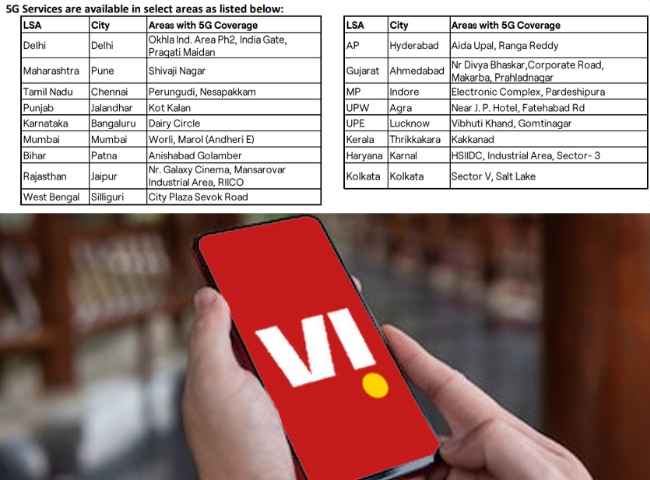 ఇటీవల వోడాఫోన్ ఐడియా (Vi) చేసిన అనౌన్స్మెంట్ ప్రకారం, మార్చి 2025 లో ముందుగా ముంబై నగరంలో 5G సేవలు ప్రారంభిస్తుంది. అంటే, వచ్చే నెలలో వోడాఫోన్ ఐడియా (Vi) తన 5జి సర్వీసులను ప్రారంభిస్తుంది. అంతేకాదు, ముంబై నగరంలో పూర్తి స్థాయిలో సర్వీస్ లను అందించిన వెంటనే దేశంలోని ప్రధాన నగరాలైన ఢిల్లీ, బెంగళూరు, పాట్నా మరియు చండీగఢ్ వంటి మరిన్ని నగరాల్లో ముందుగా 5జి సేవలు విస్తరిస్తుందని చెబుతోంది.