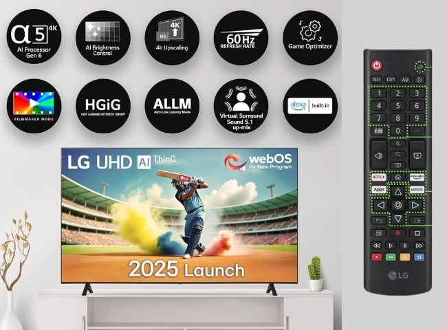 ఈ స్మార్ట్ ఫోన్ WebOS పై నడుస్తుంది మరియు AI ThinQ సపోర్ట్ కూడా ఉంటుంది. ఈ ఎల్ జి స్మార్ట్ టీవీ HDR 10 మరియు HGiG సపోర్ట్ తో గొప్ప విజువల్స్ అందిస్తుంది. అంతేకాదు, AI Sound ఫీచర్ తో వర్చువల్ 5.1 సౌండ్ అందిస్తుంది. ఈ టీవీ 20W సౌండ్ అవుట్ పుట్ అందిస్తుంది. ఈ టీవీ 3 HDMI, 2 USB, ఆప్టికల్, ఈథర్నెట్, ఇన్ బిల్ట్ Wi-Fi మరియు బ్లూటూత్ వంటి అన్ని కనెక్టివిటీ సపోర్ట్ లను కలిగి ఉంటుంది.