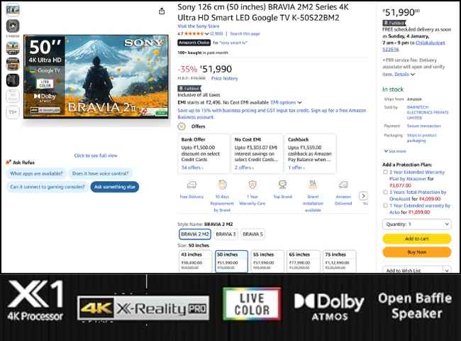 Sony Smart Tv పై కొత్త సంవత్సరం బిగ్ డీల్ ప్రకటించిన అమెజాన్.!