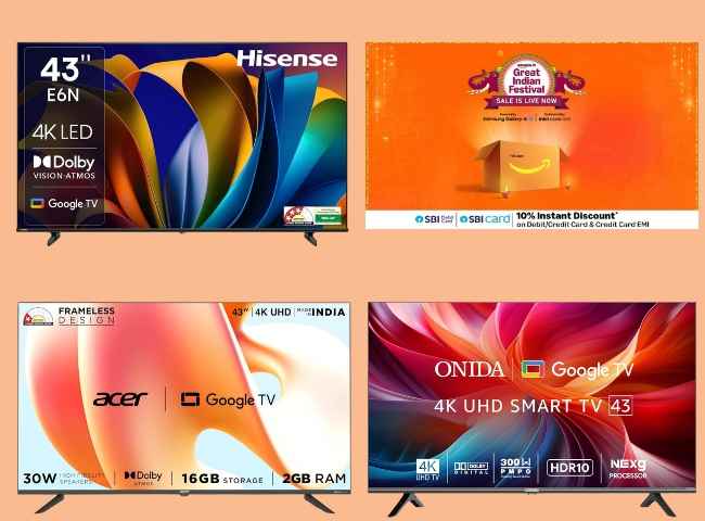 Great Indian Festival 2025 ఈరోజు నుంచి మొదలయ్యింది మరియు మొదటి రోజే స్మార్ట్ టీవీ లపై జబర్దస్త్ ఆఫర్స్ అందించింది. అమెజాన్ గ్రేట్ ఇండియన్ ఫెస్టివల్ సేల్ నుంచి ఈరోజు కేవలం 16 వేల నుంచి 19 వేల రూపాయల ధరలోనే 43 నుంచి 50 నుంచి స్మార్ట్ టీవీలు లభించడం ఆశ్చర్య పరిచింది. అందుకే, మొదటి రోజు భారీ డిస్కౌంట్ తో అమెజాన్ ఆఫర్ చేస్తున్న బెస్ట్ 43 ఇంచ్ స్మార్ట్ టీవీ డీల్స్ మీ కోసం ప్రత్యేకంగా అందిస్తున్నాము.