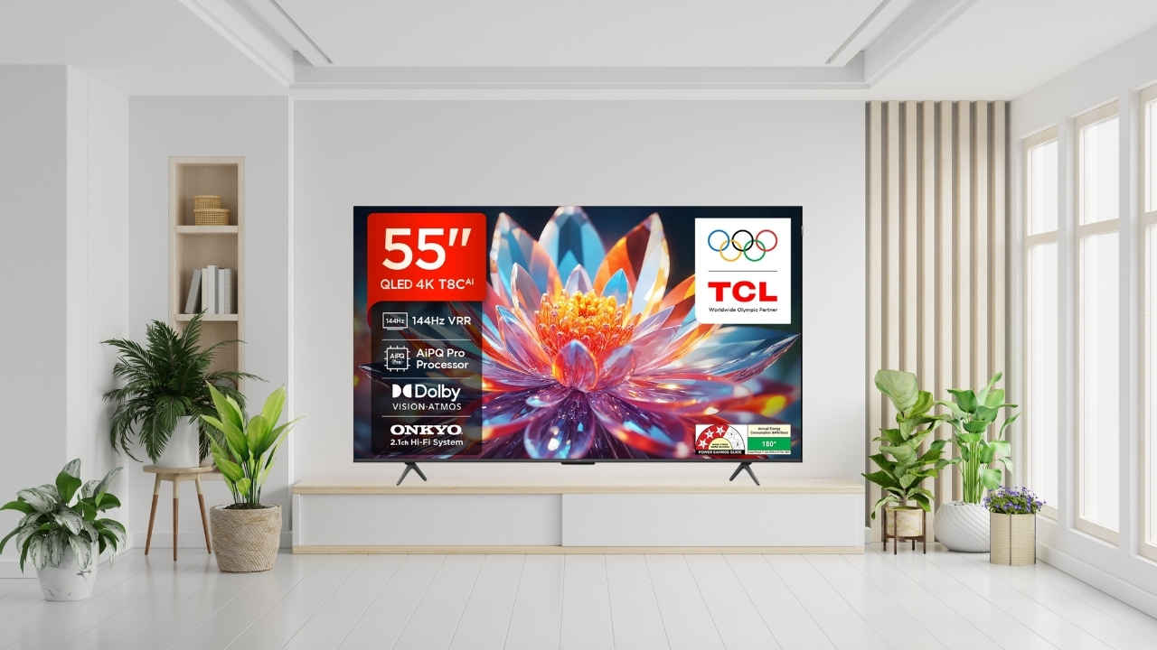 ఈ టిసిఎల్ స్మార్ట్ టీవీ 55 ఇంచ్ పరిమాణం కలిగిన క్యూలెడ్ స్క్రీన్ ను 120Hz రిఫ్రెష్ రేట్ మరియు 4K UHD (3840 x 2160) రిజల్యూషన్ తో కలిగి ఉంటుంది. ఈ టీవీ AiPQ ప్రోసెసర్ తో పని చేస్తుంది మరియు జతగా 3 జీబీ ర్యామ్ మరియు 32 జీబీ స్టోరేజ్ తో వస్తుంది. ఈ టీవీ 4K HDR Pro, HDR 10, డాల్బీ విజన్ మరియు బయోనిక్ కలర్ ఆప్టిమైజేషన్ తో రియల్ వరల్డ్ కలర్స్ ను కళ్ళ ముందు తీసుకొస్తుందని కంపెనీ తెలిపింది.