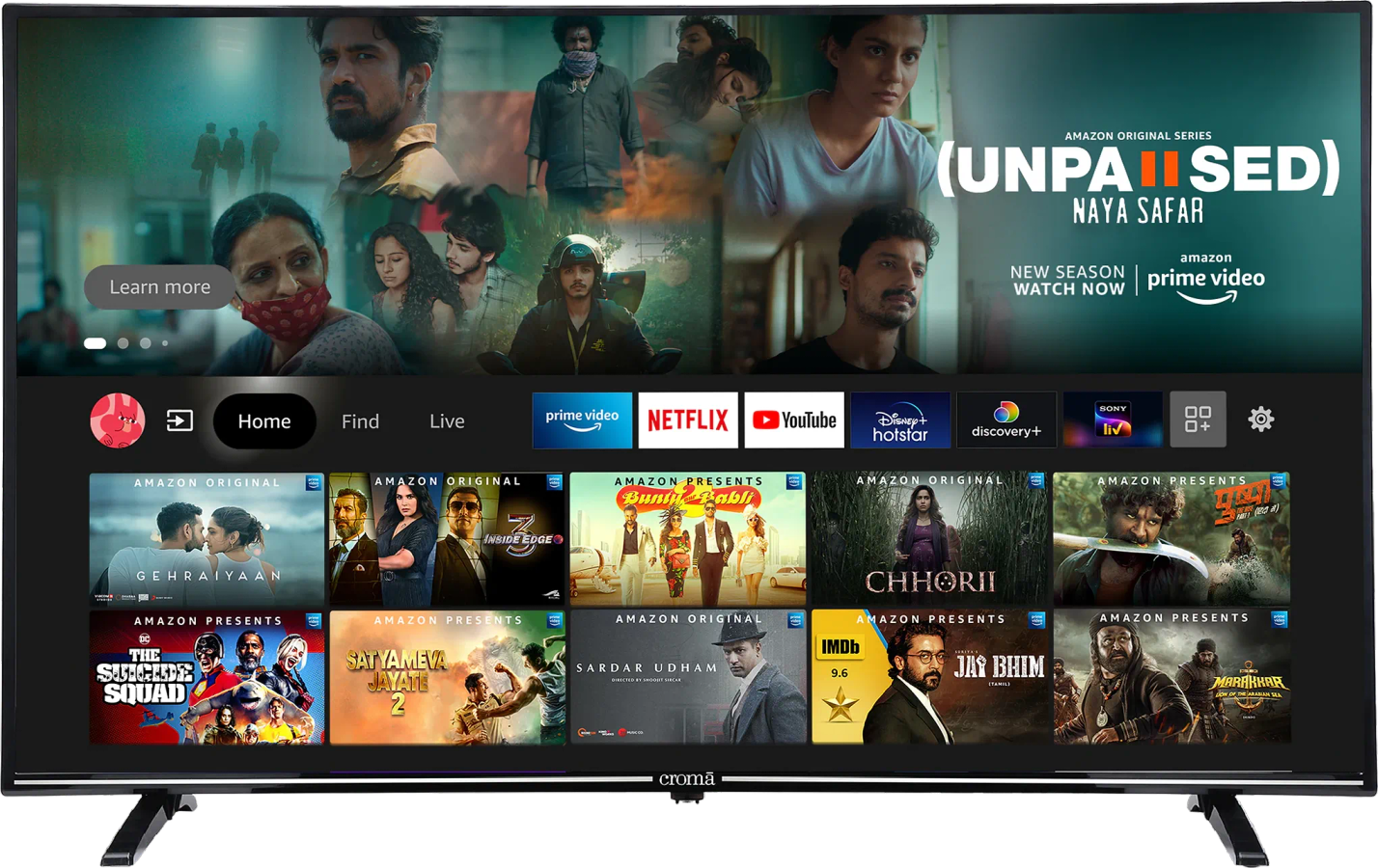 | Supported Apps | Netflix, Prime Video, Zee5, Sony LIV, YouTube, etc. |